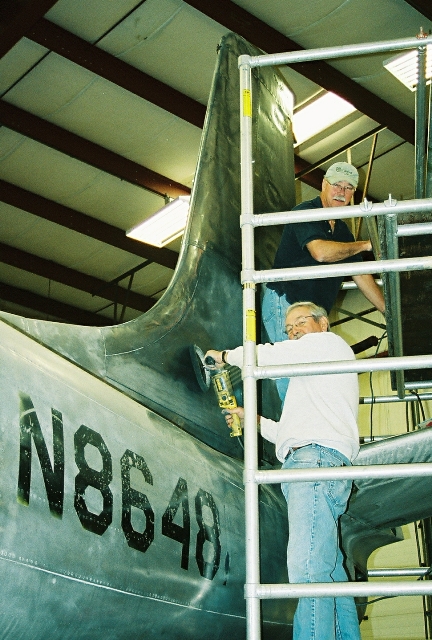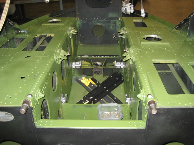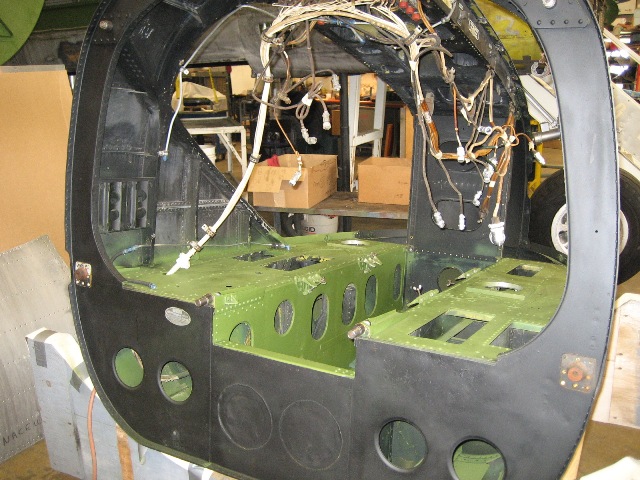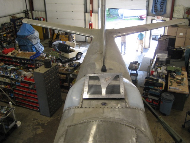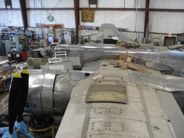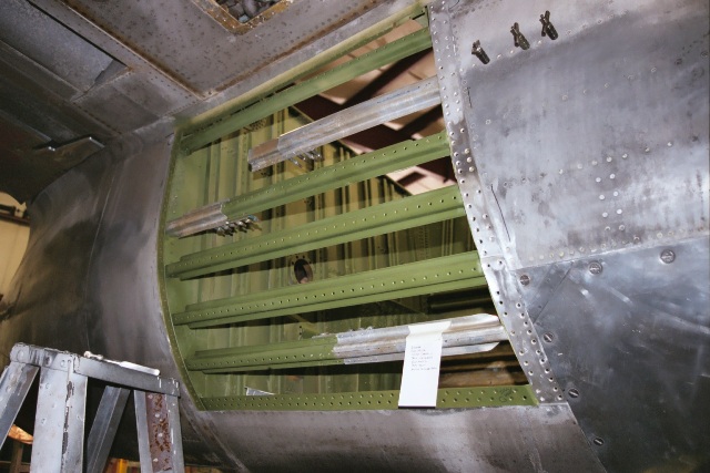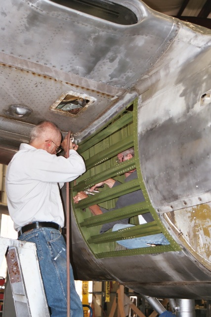 Overview Photos Rear view showing gunner escape hatch Six Gun Nose Ammo box and gun mounting area Tail Work Polishing horizontal stabilizer Reida Rae tail code applied after 50 years! Nacelle and Fuel Tank Well Repair Flap Motor refurbishment Flap motor in place on rear bomb bay bulkhead Pilot Cockpit Hatch Work
